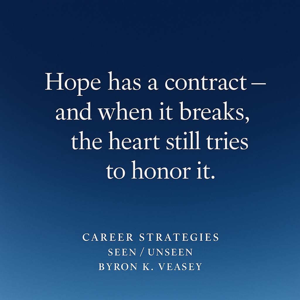 Hope has a contract, and sometimes it breaks before it begins.